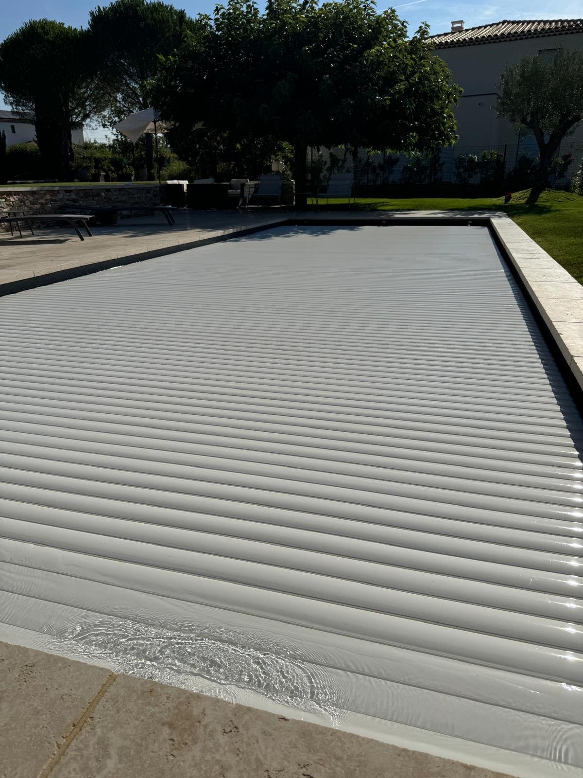 Nous installons des volets roulants automatiques, qu’ils soient immergés ou hors sol, assurant une sécurité optimale et une protection efficace contre les débris extérieurs.